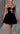 Chic black mini dress with an eye-catching gold and sequins wave embellishment on the shoulder. The lace-up back detail adds a modern twist to this elegant design.