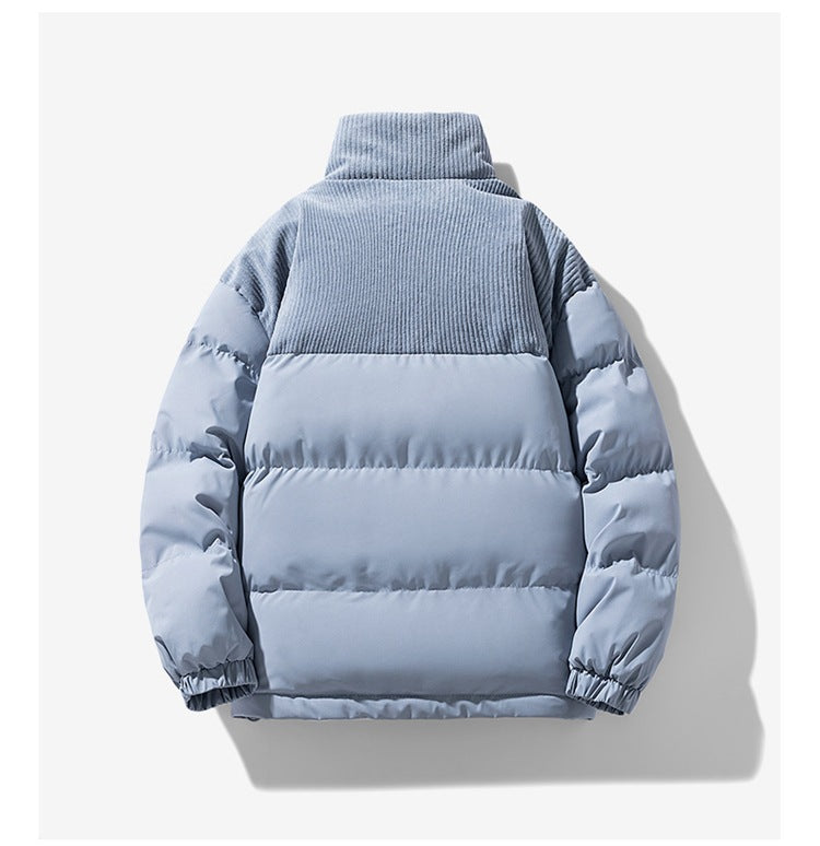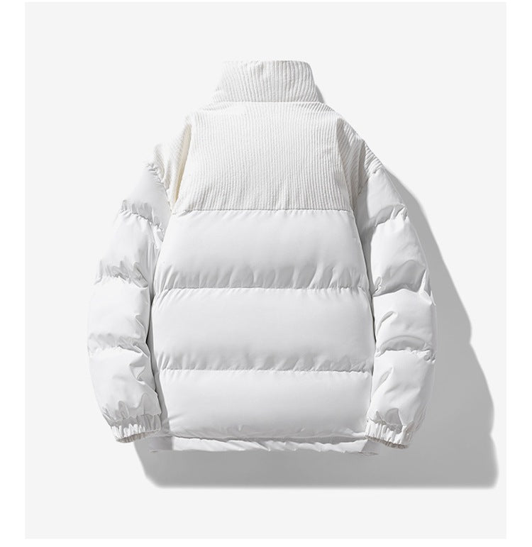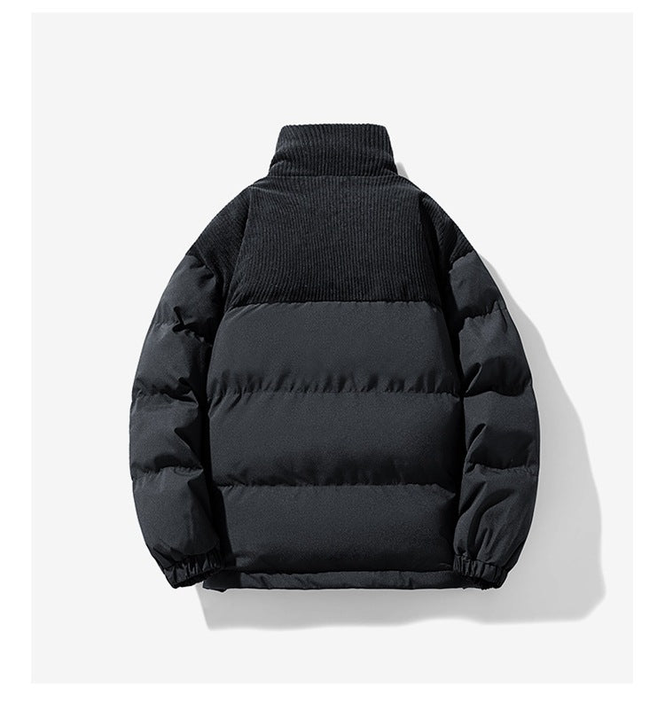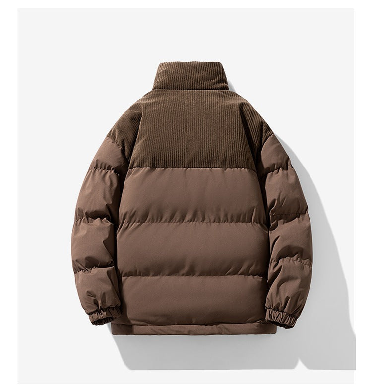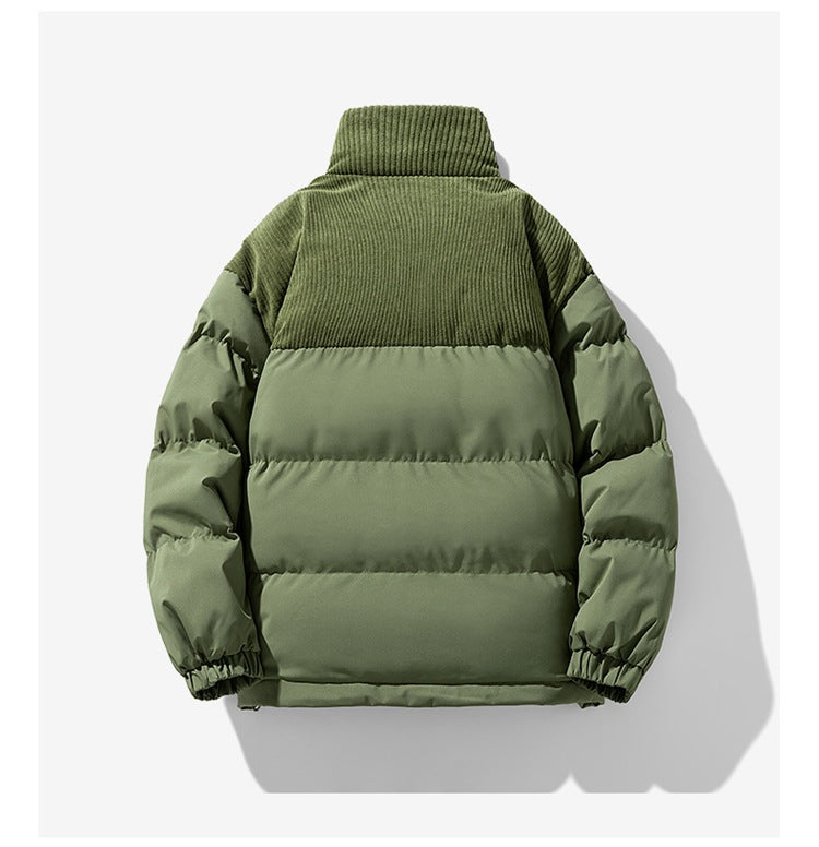 Unique Corduroy Accents: Adds a textured touch to the classic puffer style, making it stand out.