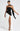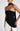 Contrasting design: The black strapless bodice and flowing white skirt create a striking, high-fashion look.